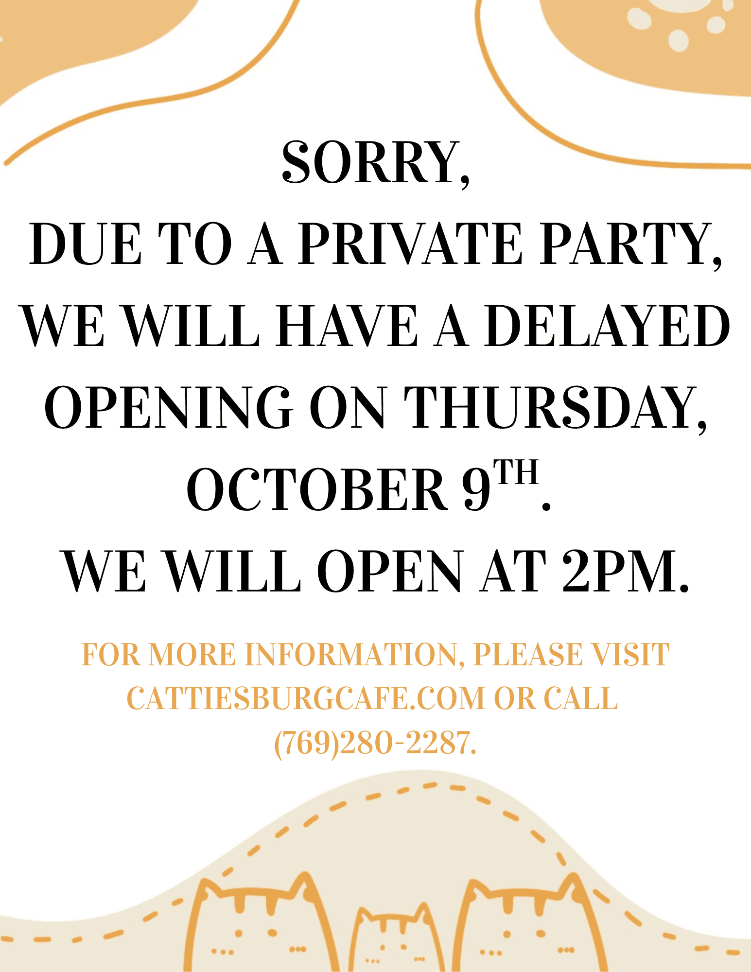 We are a cat cafe located in Hattiesburg, MS. Our cafe is filled with all self-service, pre-packaged snacks and drinks. We are partnered with the Pretty Pittie Committee to find loving homes for sweet kitties. We also offer party packages and fun events! Check out our parties and event page for information!