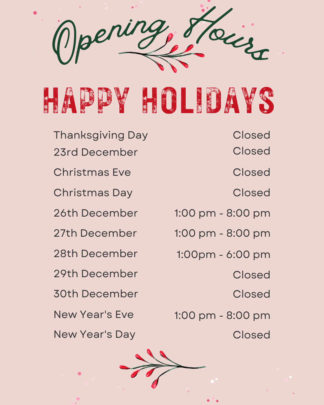 Wednesday – Friday: 1:00 PM – 8:00 PM
